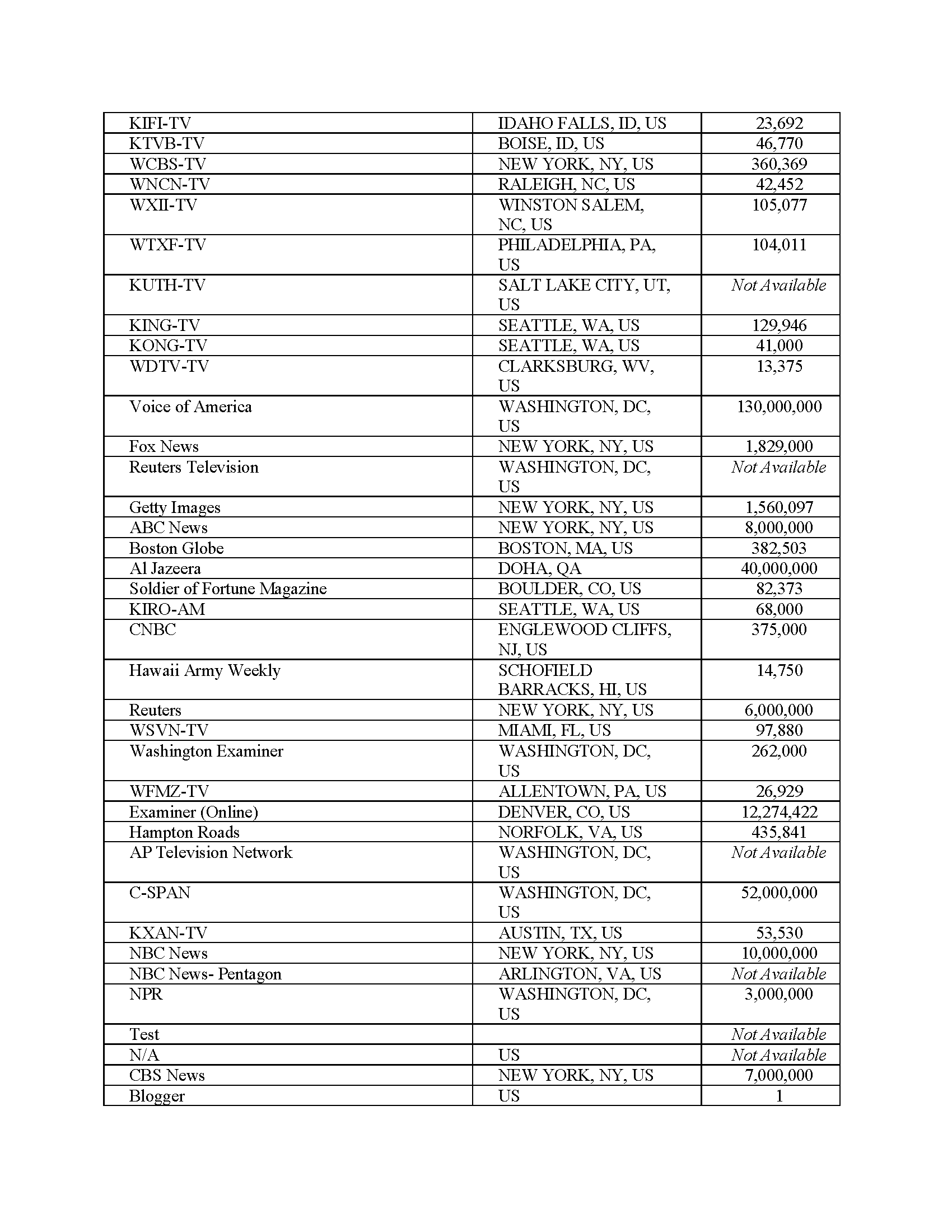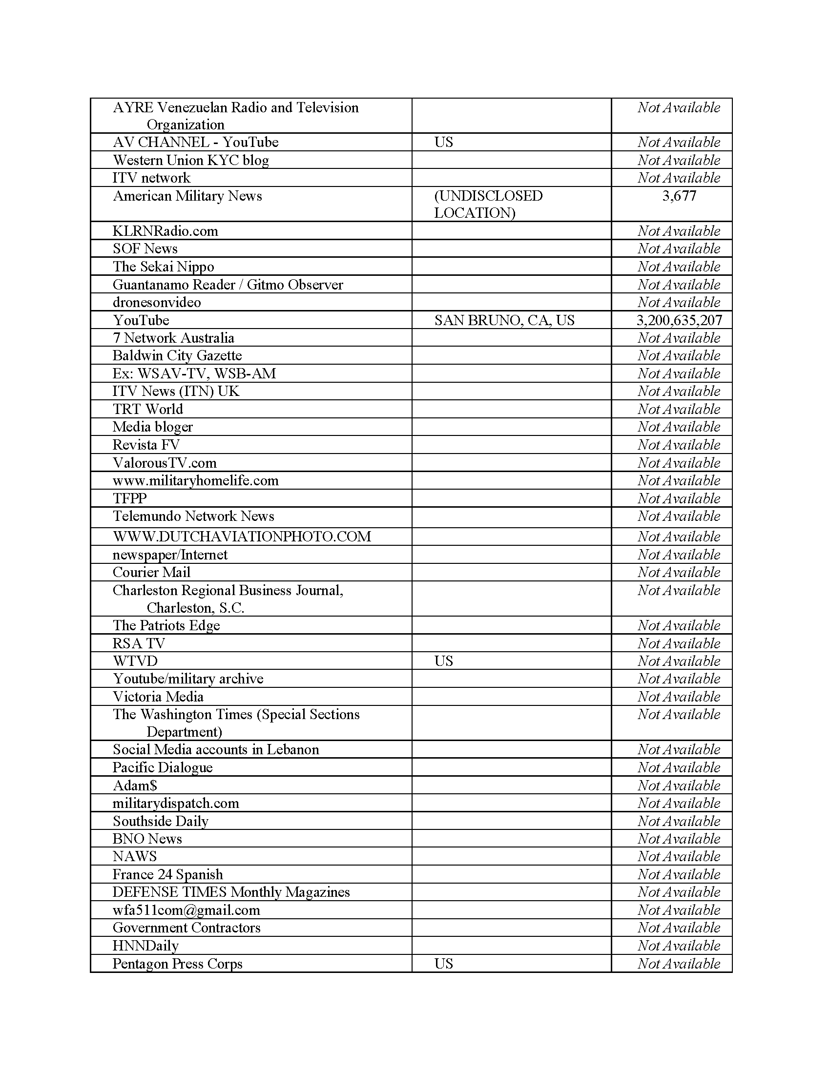 Coverage distributed across official, military, local, national, international, and social channels