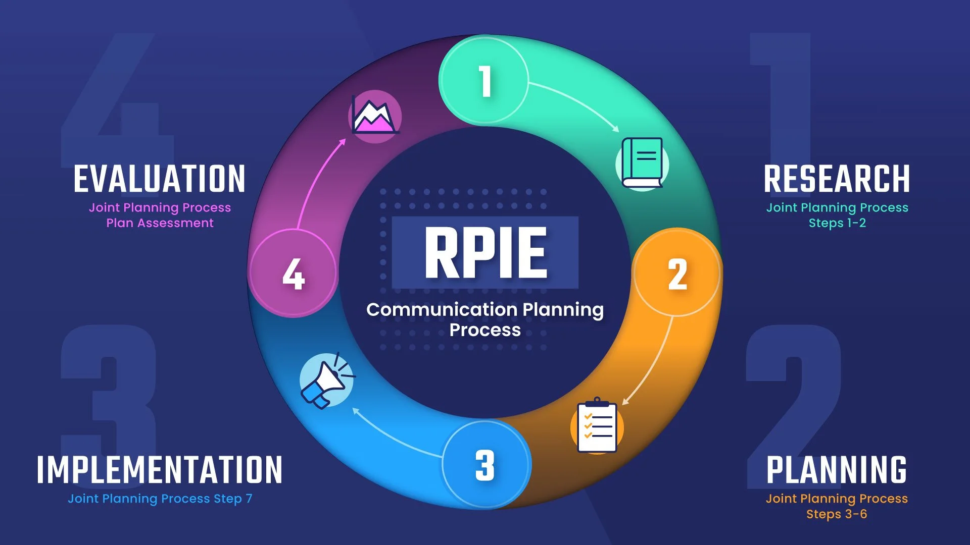 Research, planning, implementation, and evaluation (RPIE) are the core pieces of the communication planning process. the RPIE process is built into all military planning processes from the Joint Planning Process to the Military Decision Making Process.