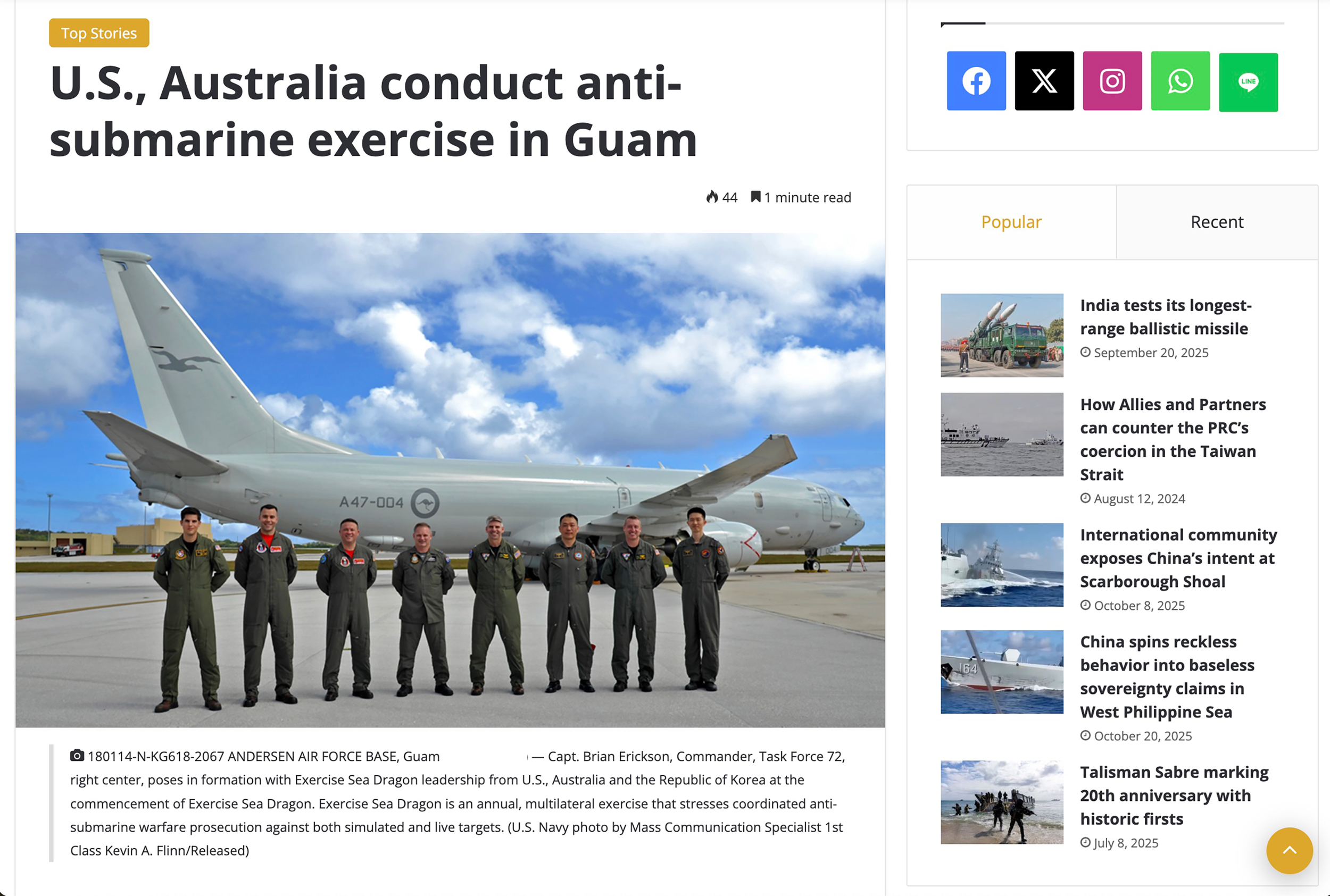 Coverage and downstream pickup spanned Navy channels, military trade outlets, local Guam media, Tier 1 national media, international outlets, and various social platforms.